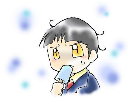 嫌々アイス食ってる感じの顔です